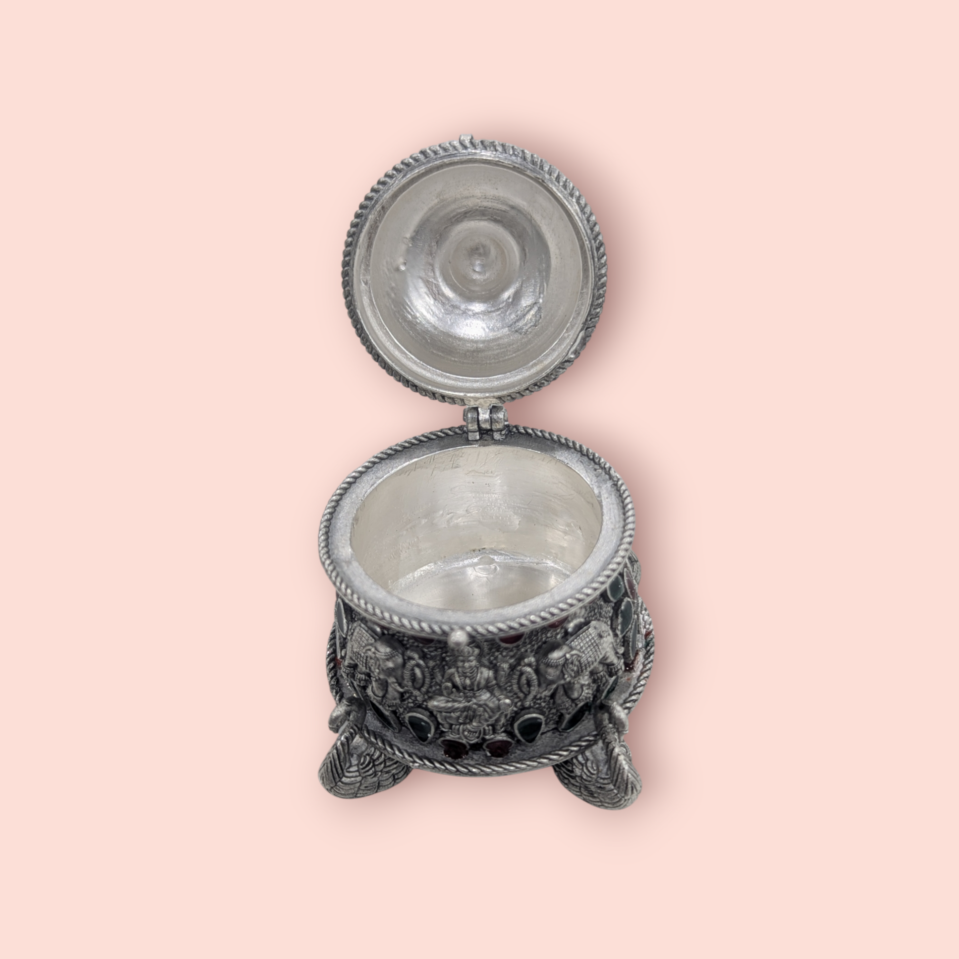 Embrace tradition with a modern twist—our Silver Emerald Kumkum Bharani is not just a utility item; it’s a statement of devotion and beauty. Perfect for festivals, weddings, or daily prayers, this exquisite piece is a must-have for every spiritual seeker.