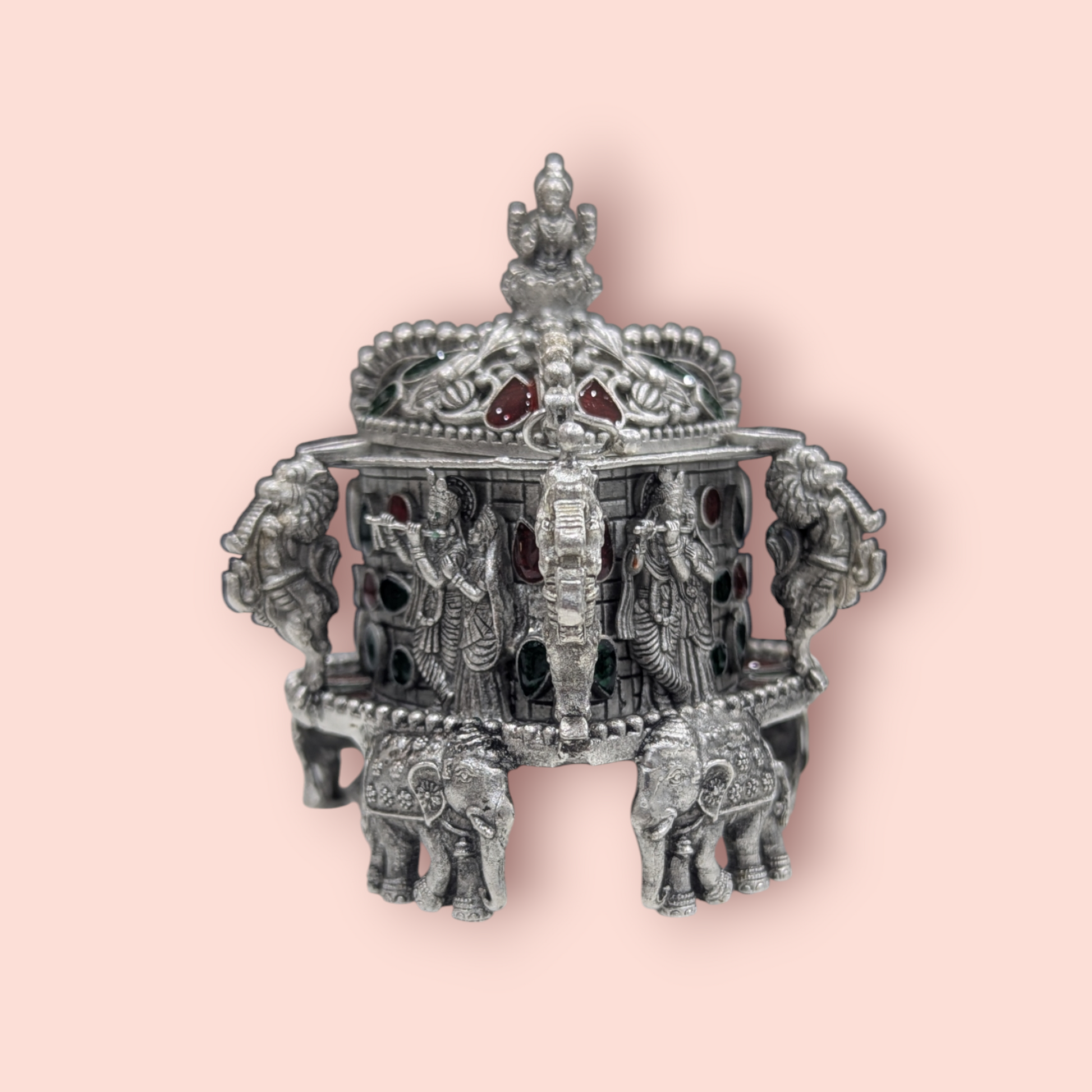 Embrace tradition with a modern twist—our Silver Emerald Kumkum Bharani is not just a utility item; it’s a statement of devotion and beauty. Perfect for festivals, weddings, or daily prayers, this exquisite piece is a must-have for every spiritual seeker.
