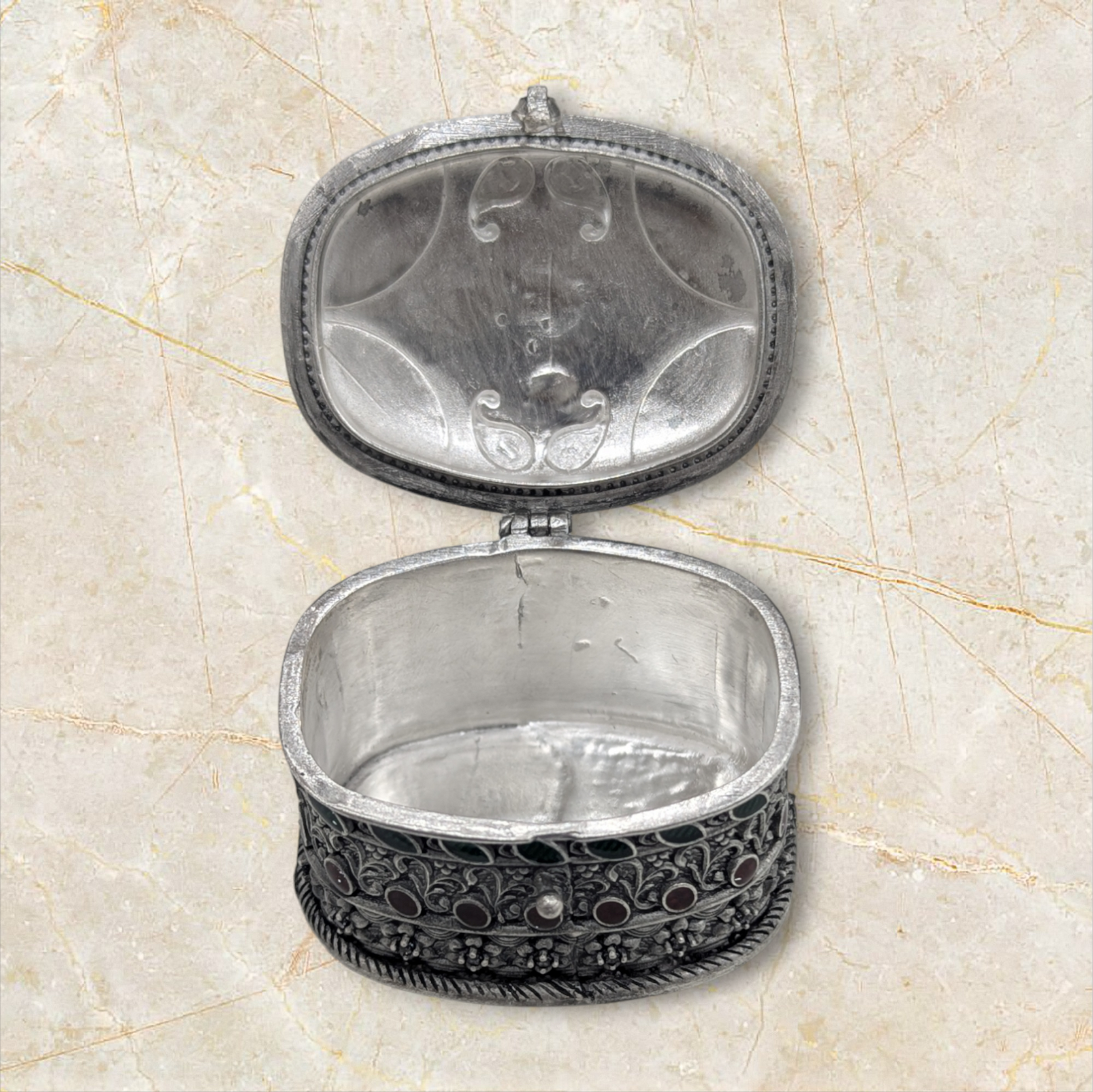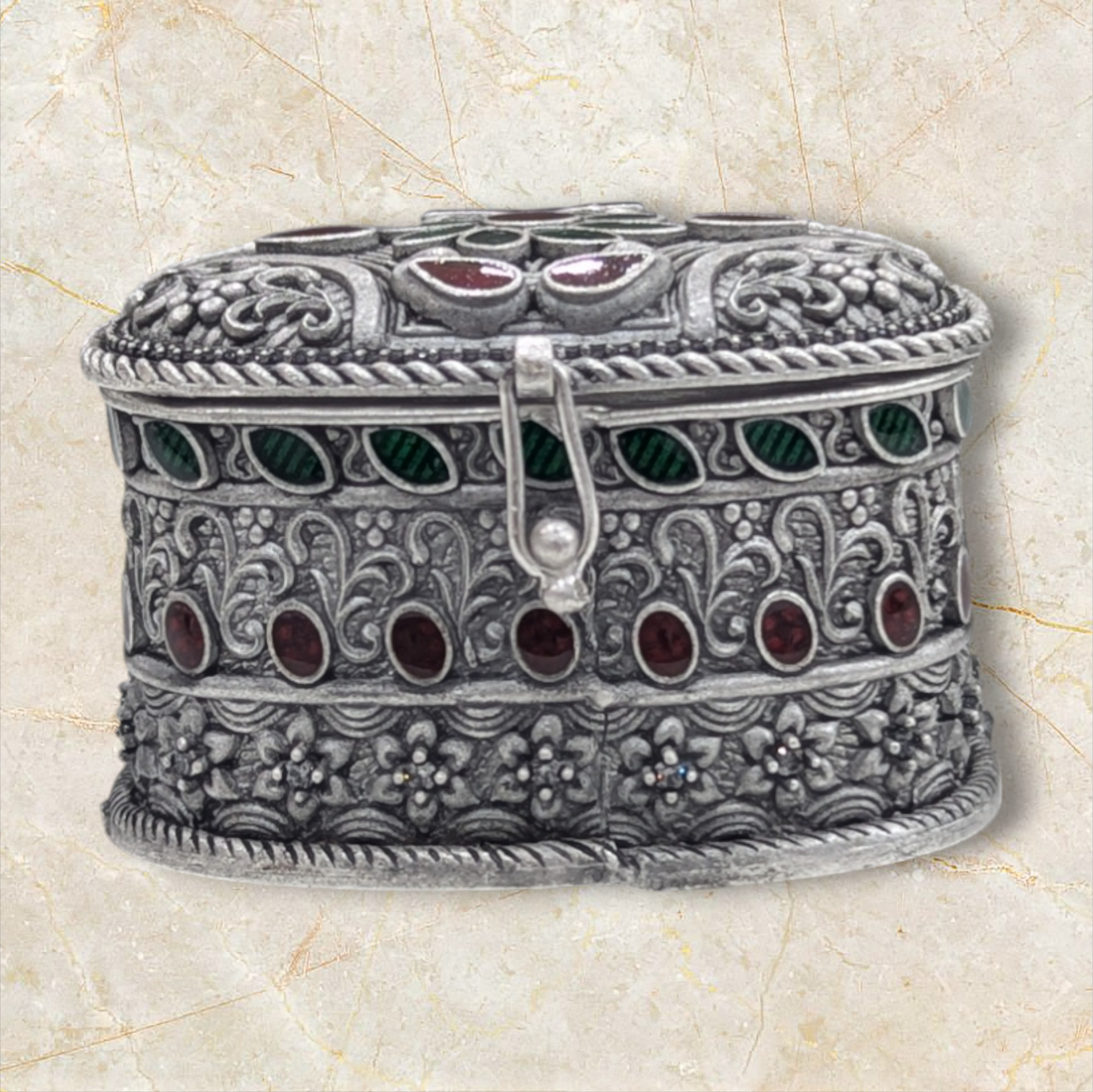 Embrace tradition with a modern twist—our Silver Emerald Kumkum Bharani is not just a utility item; it’s a statement of devotion and beauty. Perfect for festivals, weddings, or daily prayers, this exquisite piece is a must-have for every spiritual seeker.
