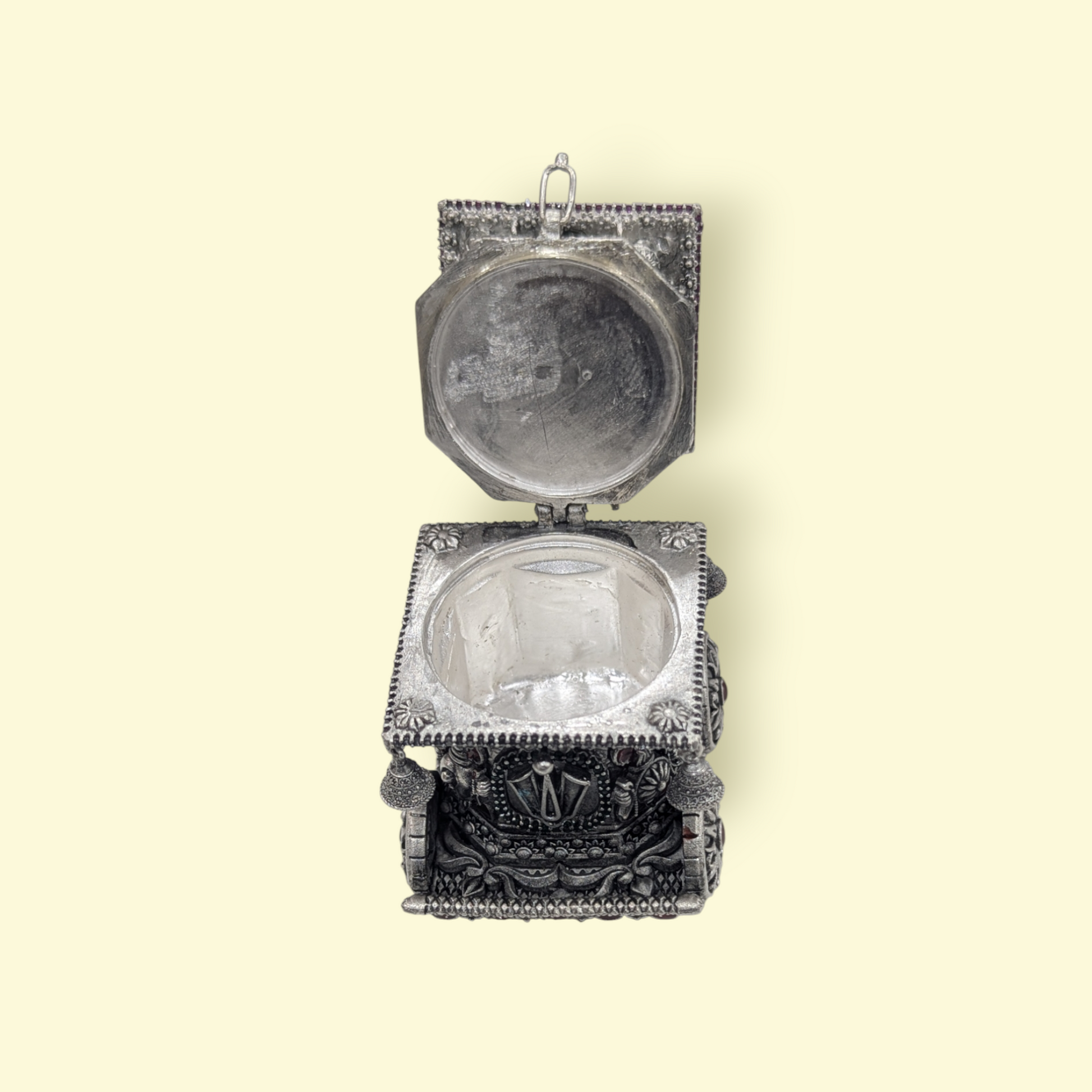 Embrace tradition with a modern twist—our Silver Emerald Kumkum Bharani is not just a utility item; it’s a statement of devotion and beauty. Perfect for festivals, weddings, or daily prayers, this exquisite piece is a must-have for every spiritual seeker.