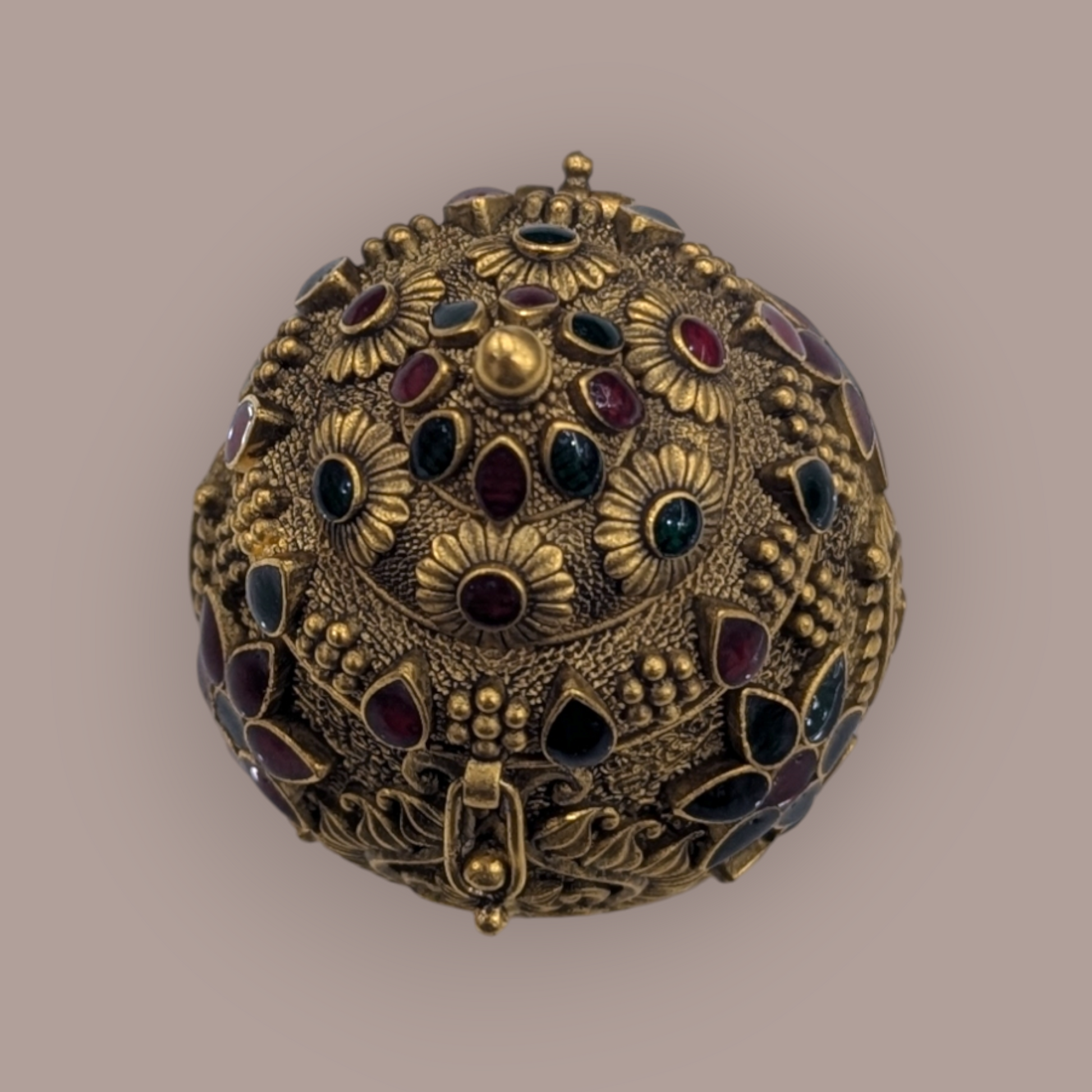 With its lightweight design and easy-to-handle shape, this kumkum bharani is perfect for daily rituals or special occasions. Elevate your spiritual practices with this luxurious piece that embodies both heritage and beauty, making it an ideal gift for loved ones or a cherished addition to your own collection.