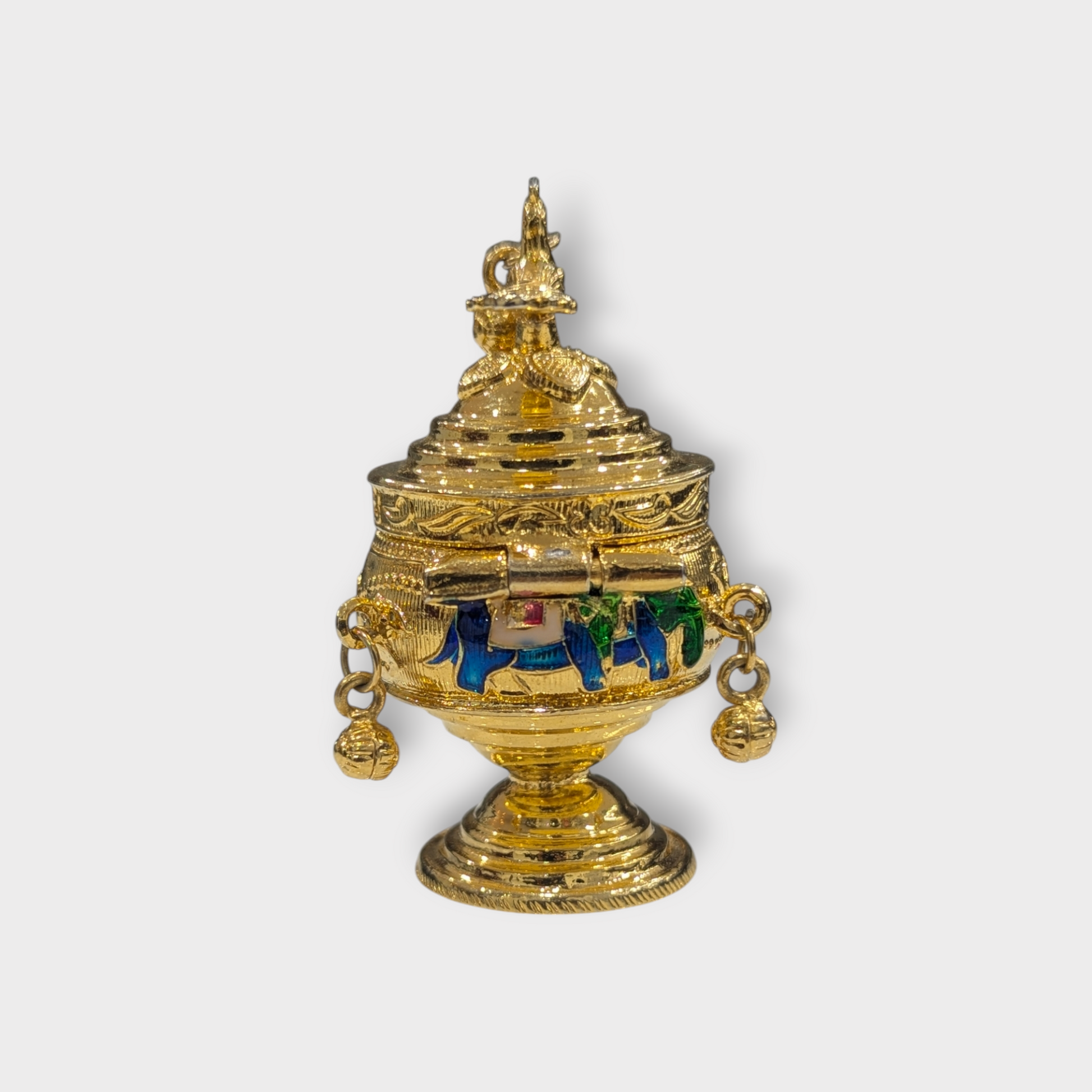With its lightweight design and easy-to-handle shape, this kumkum bharani is perfect for daily rituals or special occasions. Elevate your spiritual practices with this luxurious piece that embodies both heritage and beauty, making it an ideal gift for loved ones or a cherished addition to your own collection.